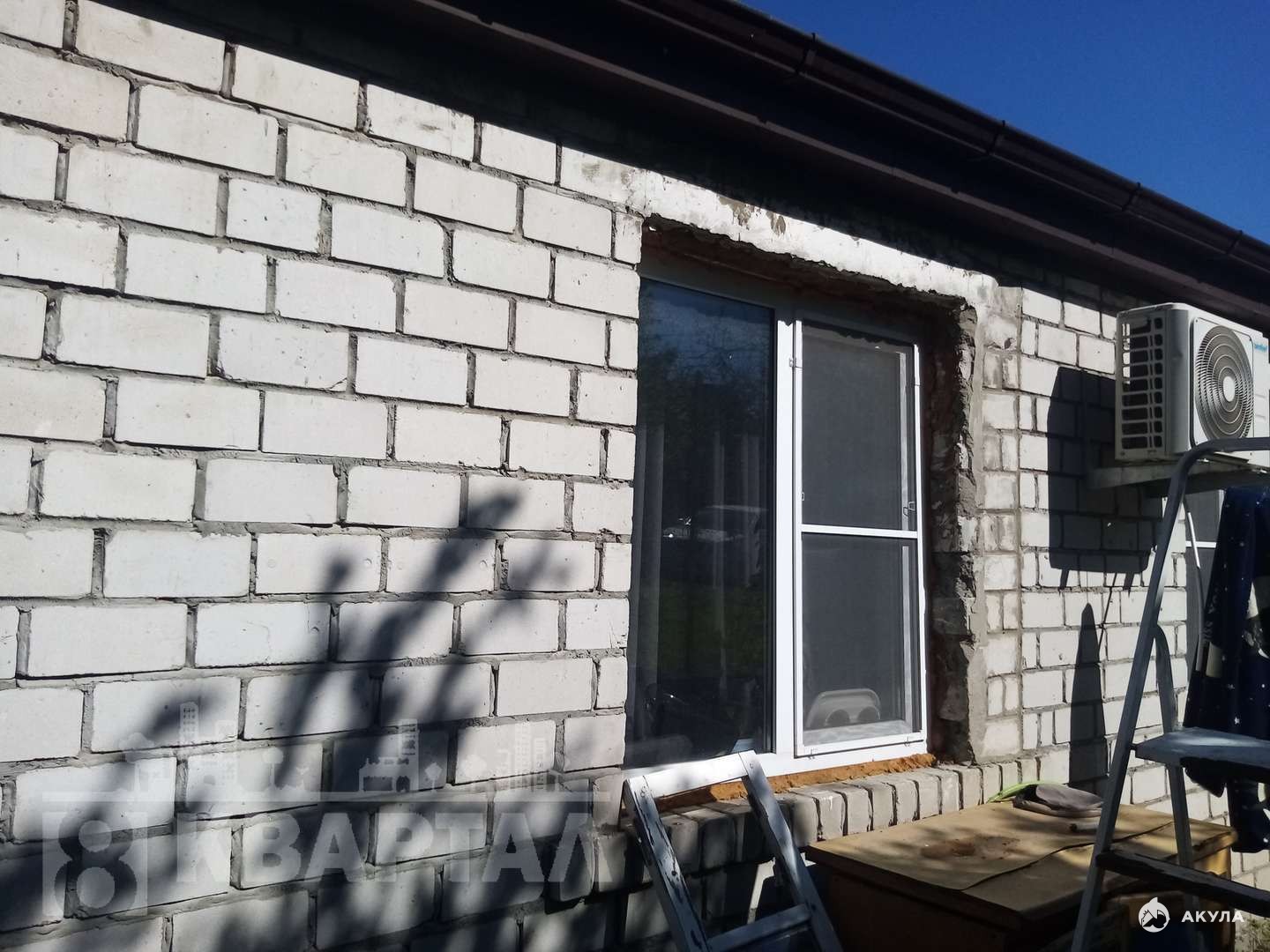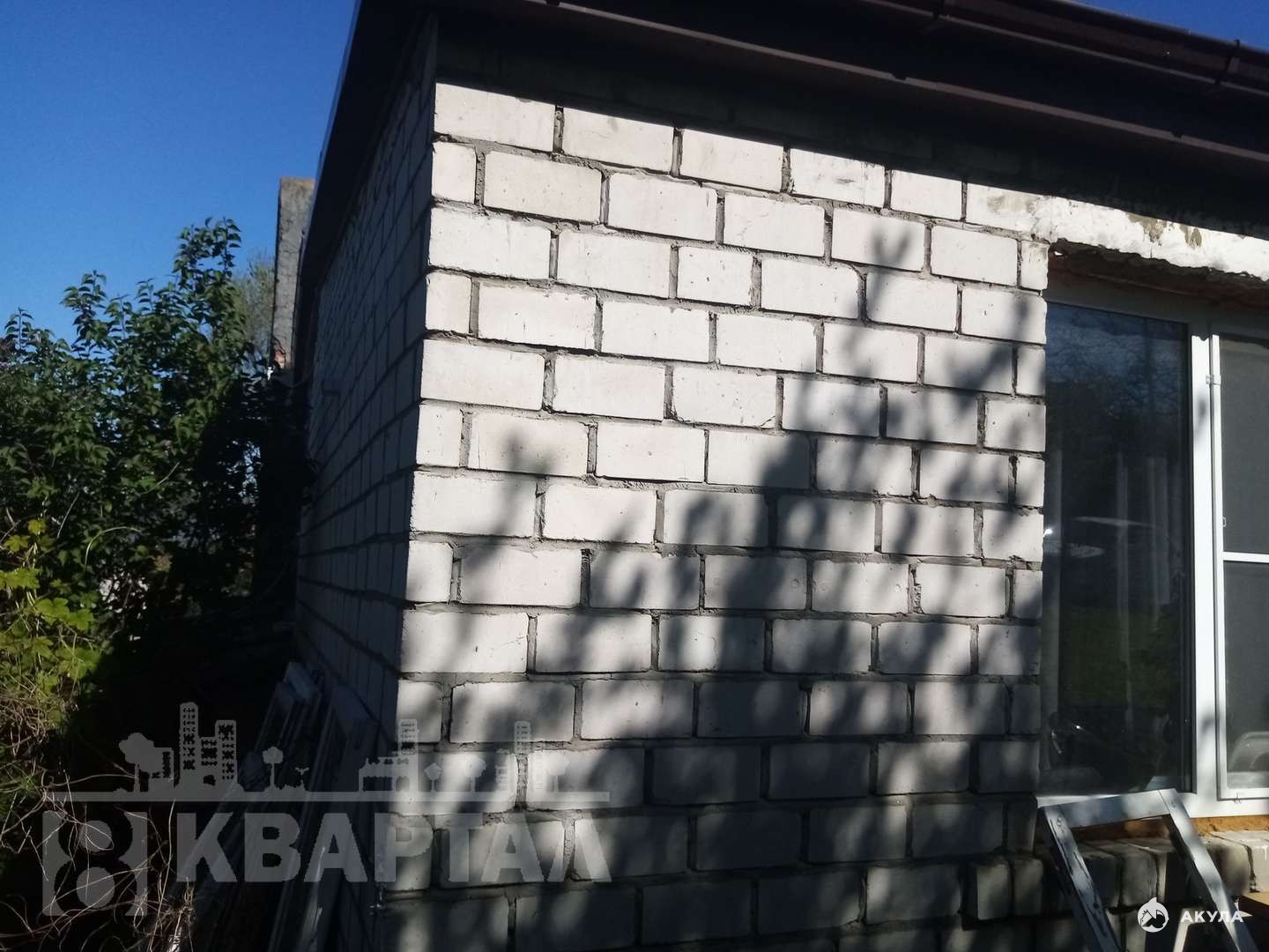 Дом построен в 1992 году из керомзитобетонных блоков с утеплением и облицовкой кирпичем..