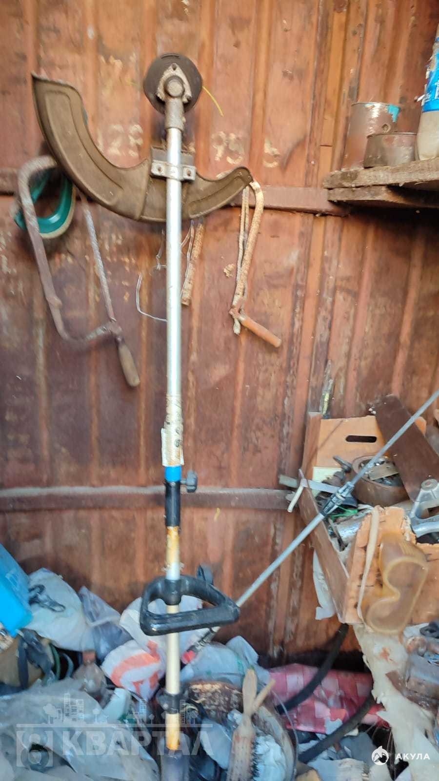 Есть большая железная емкость под воду. Железный контейнер. Остается кирпич для печи , инструмент и эл. триммер в подарок .