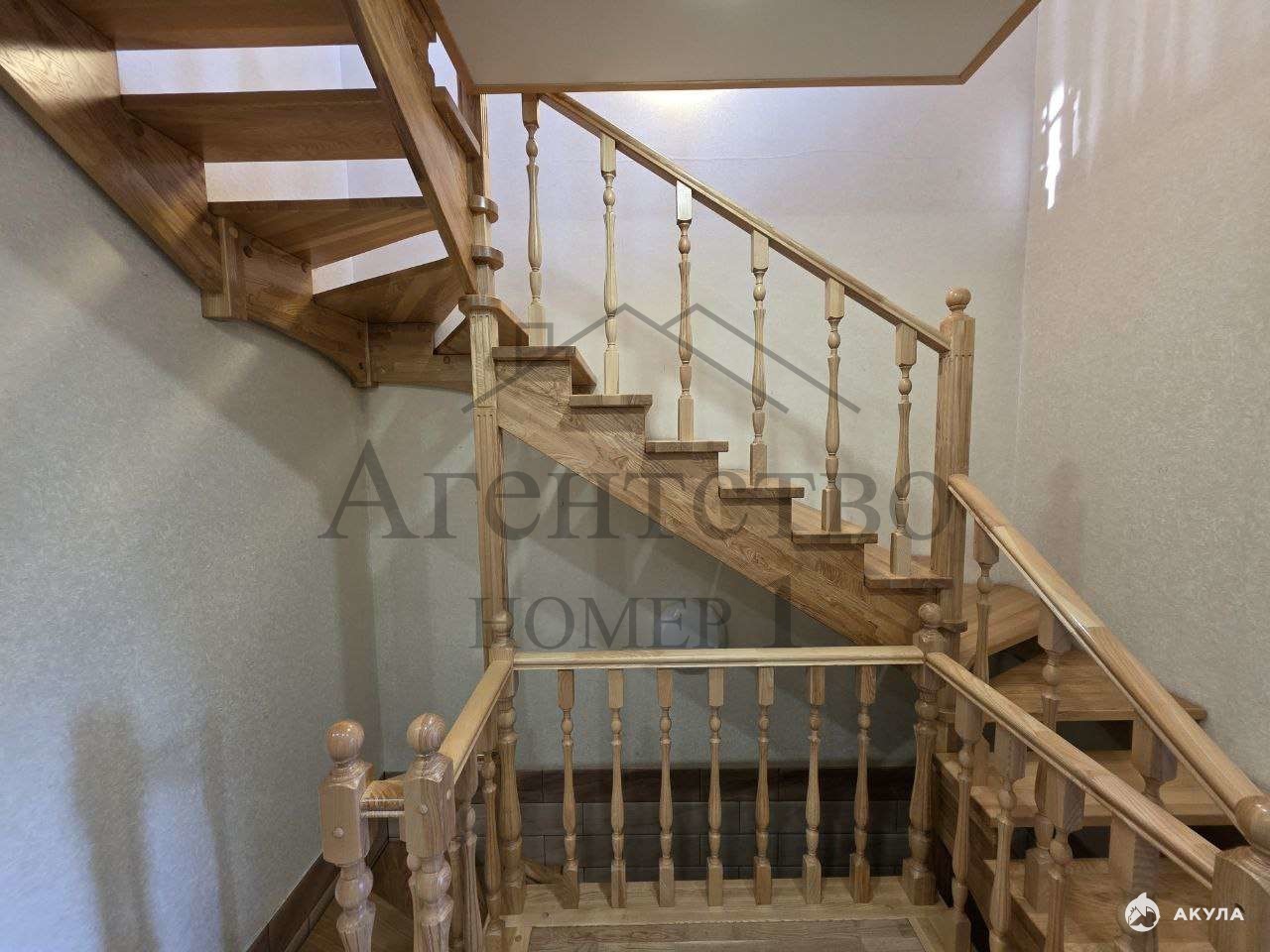 элегантная деревянная лестница из натурального дуба;