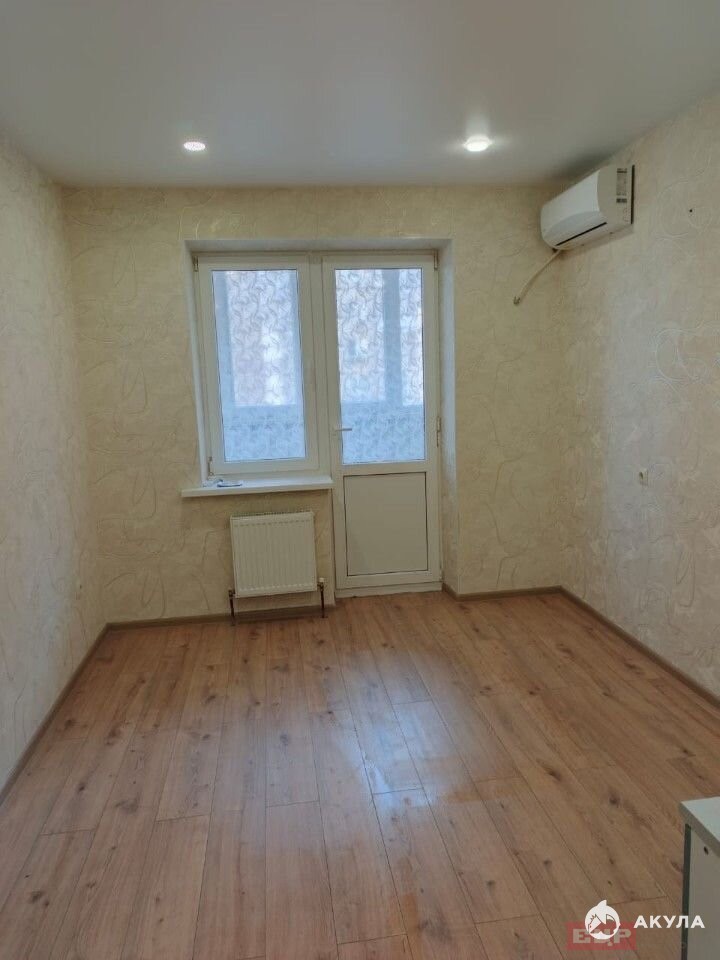 Квартира с евроремонтом, никто не жил, натяжные потолки, на полу ламинат, обои светлых тонов, лоджия застекленная, санузел в плитке, установлен сплит.