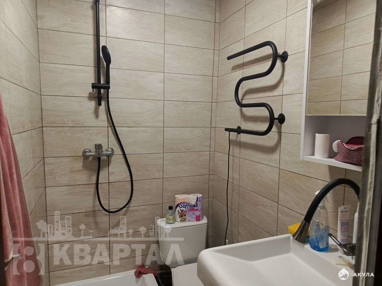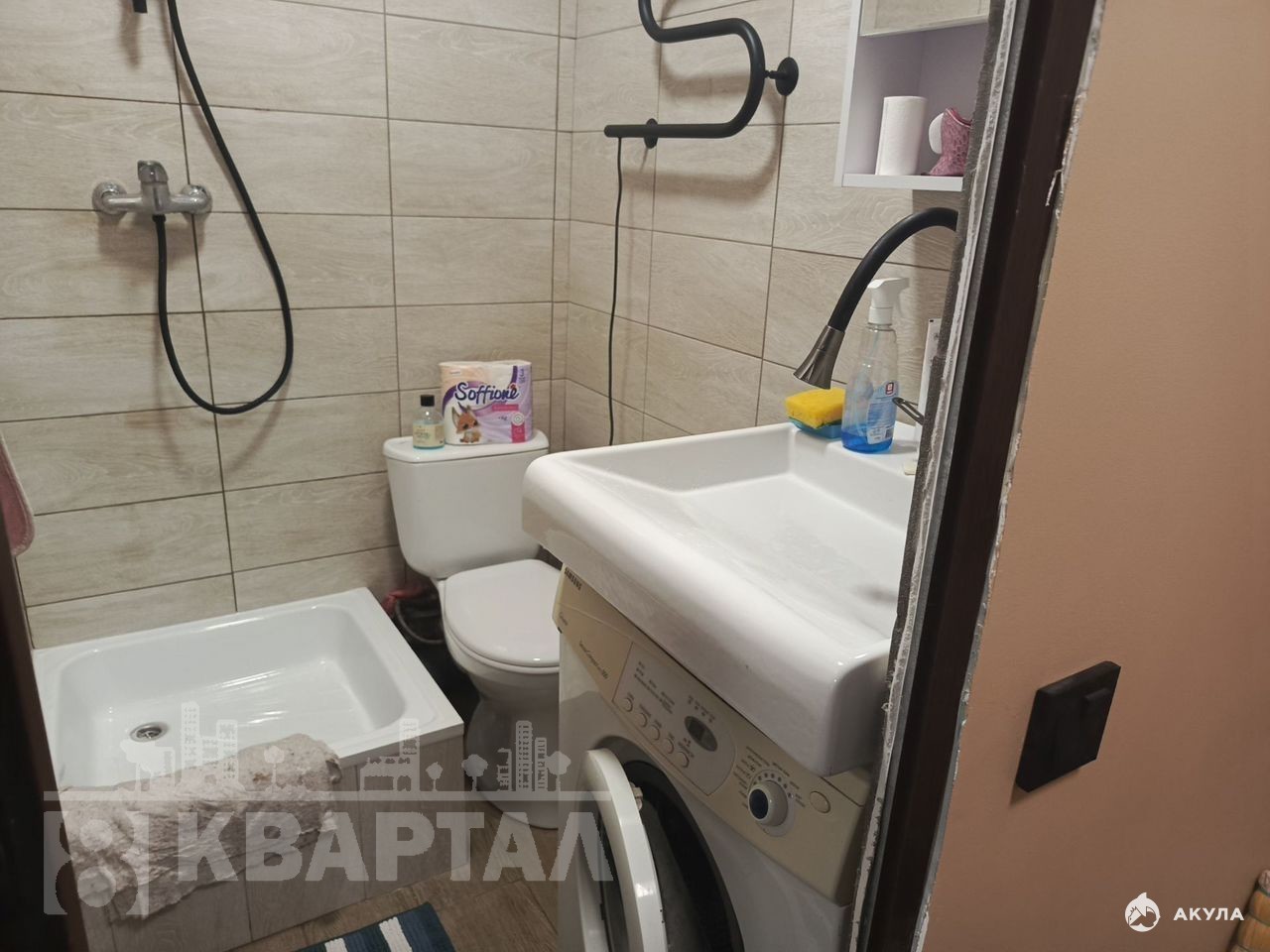 Ванная комната совмещенная, оснащена современной сантехникой и стиральной машиной.