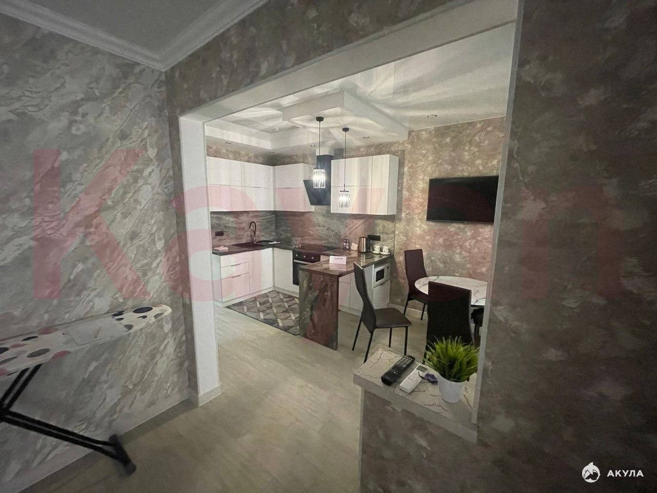 Потолки высотой 3 метра создают ощущение простора. Квартира полностью меблирована: в комнате и на кухне есть все необходимое для комфортного проживания. Совмещенный санузел оборудован ванной. В наличии современная бытовая техника: кондиционер, холодильник, посудомоечная и стиральная машины, телевизор.