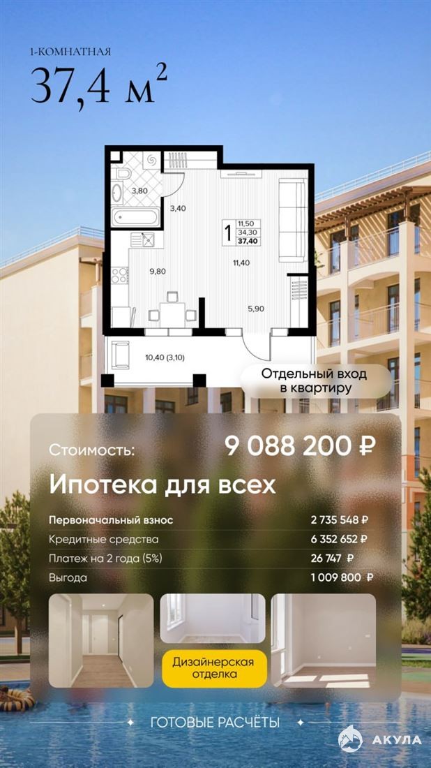 1-2 комн. квартиры ( село Сукко ул Мирная 11). Дом: материал стен - монолитный, вид дома - новостройка, год постройки - 2025, стадия - строится, квартал сдачи - 1, этаж - 1, этажность - 8. Особенности дома: огороженная территория, охрана, видеонаблюдение, машино/место, лифт пассажирский. Объект: балкон - 1, лоджия - 1. Состояние объекта: евроремонт.