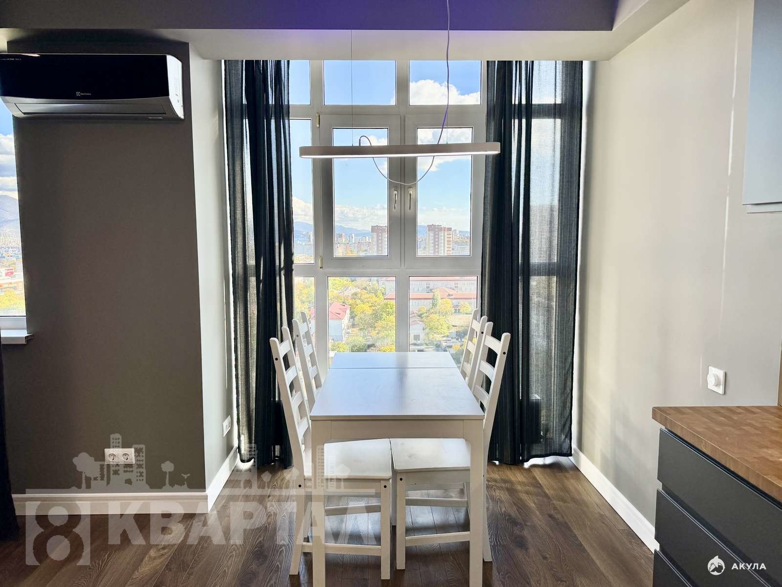 Ремонт выполнен для себя, с использованием качественных и дорогих материалов. Установлена надёжная входная дверь, современная кухня, остаётся техника, кондиционер, водонагреватель, система «умный свет». Всё продумано до мелочей — можно заезжать и жить без дополнительных вложений.