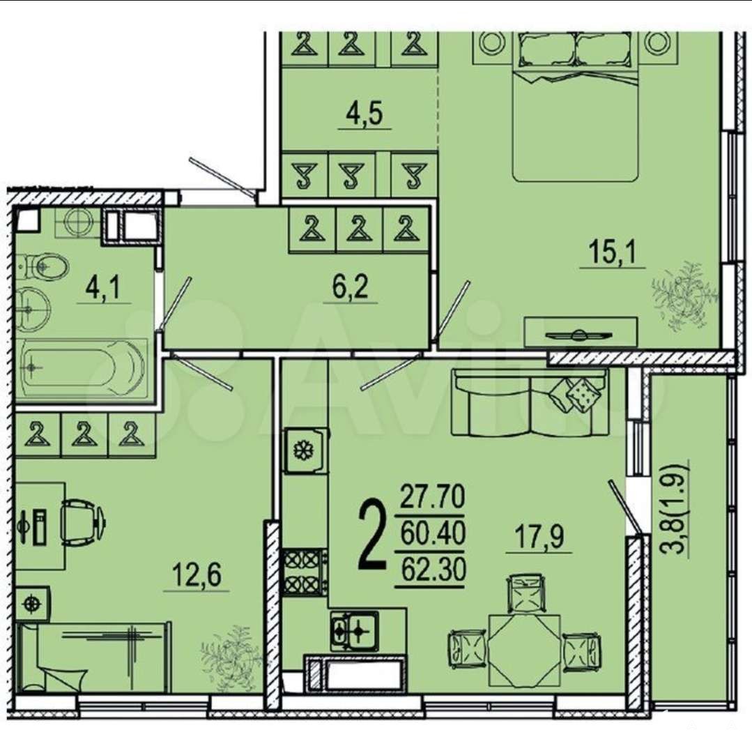 - 62 м²