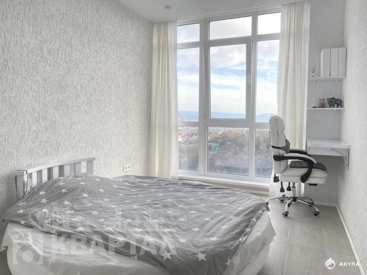 В квартире панорамные окна, что обеспечивает много света и уюта. Из окон открывается красивый вид на город, горы и море. Вода есть всегда, сама по себе квартира очень теплая - норд-осты не заметны. Две гардеробные добавляют удобства для хранения вещей.
