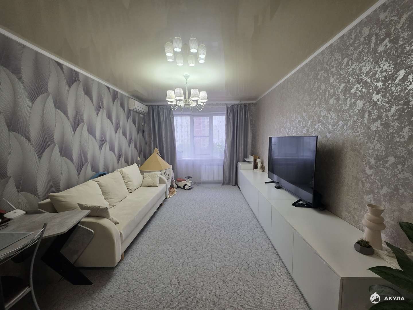 ?️ Остаётся в квартире: зал-диван, компьютерный стол, сплит-система кухня -(гарнитур, варочная панель, микроволновая печь), обеденный стол, 3 стула, спальня- сплит-система, 2хспальная кровать, платяной шкаф, прихожая- шкаф-купе, в санузле- водонагреватель.