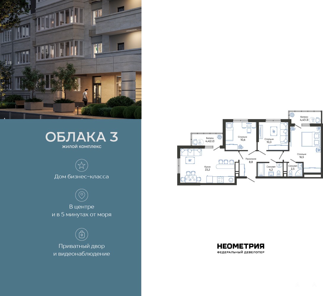 Продается квартира в жилом комплексе «Облака» от федерального девелопера «Неометрия».