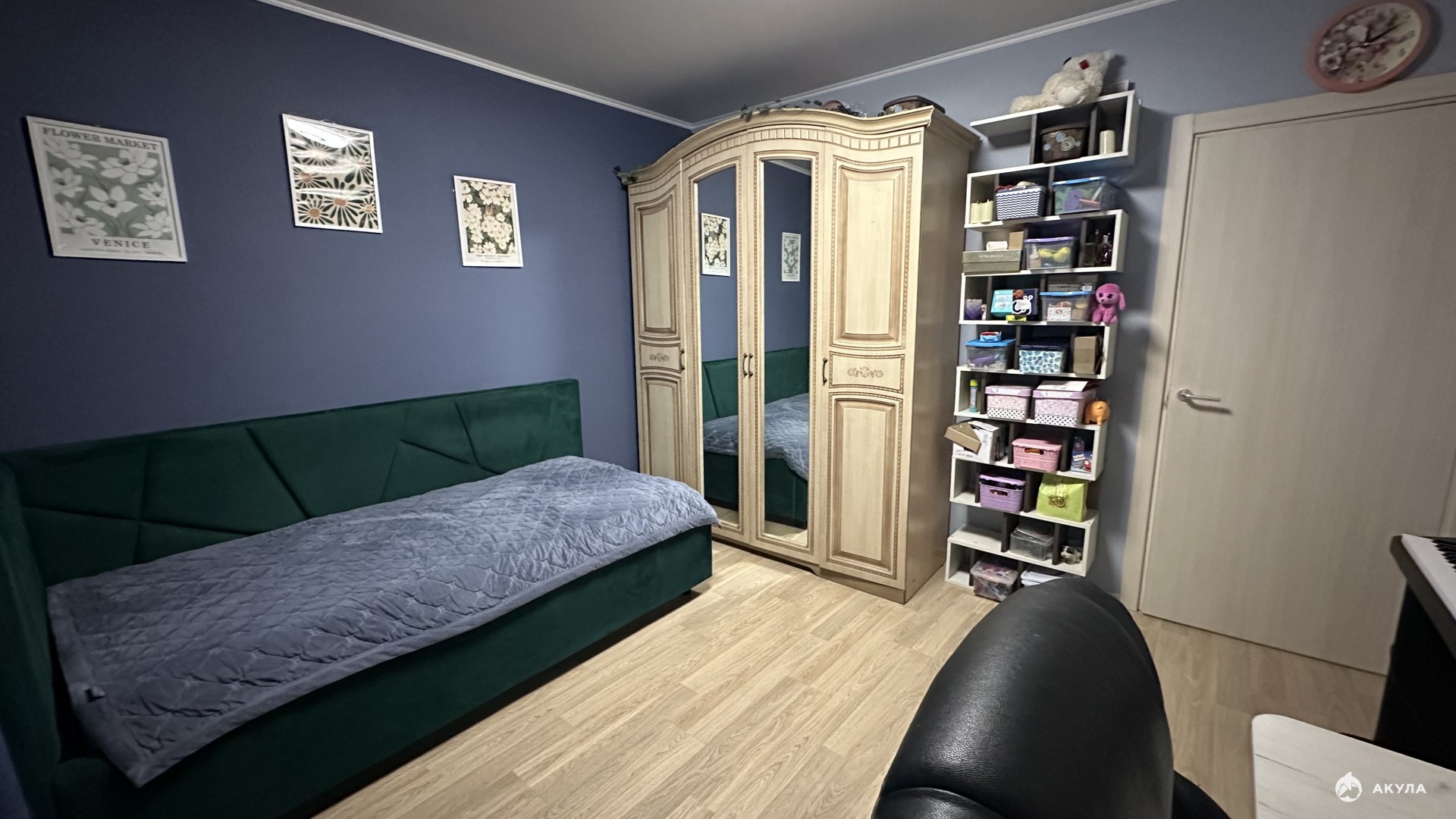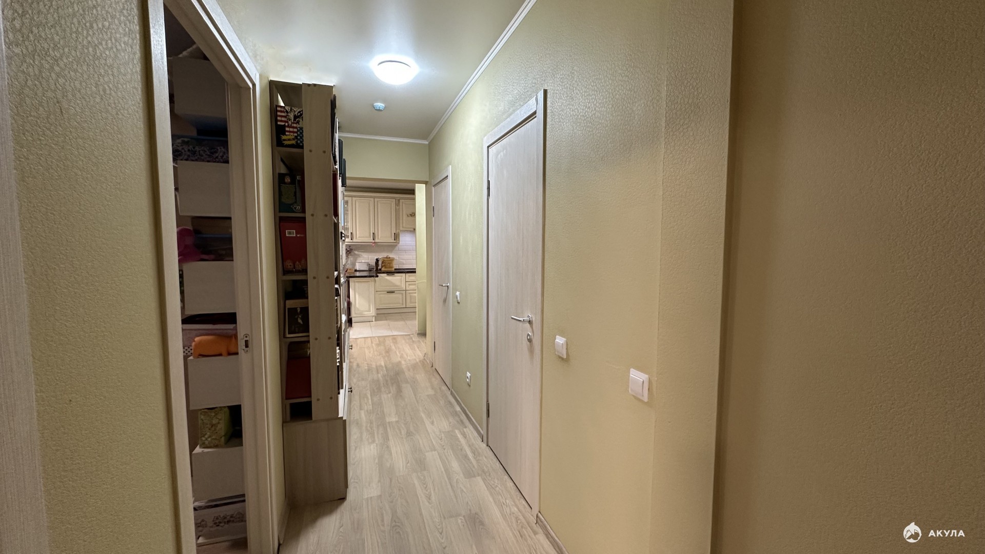 Планировка: 3 изолированные спальни (в одной оборудована гардеробная), гостиная, отдельная кладовая (потенциал для второй гардеробной), 2 санузла (один совмещенный с ванной). Вместительный коридор достаточен для установки книжных шкафов.