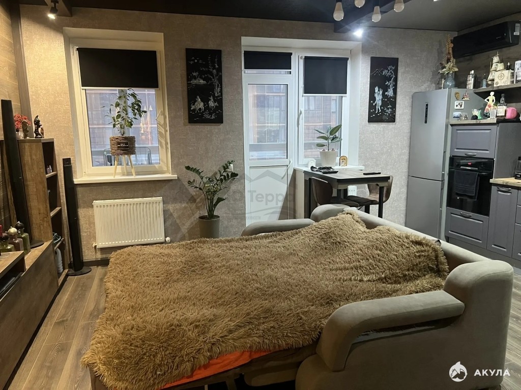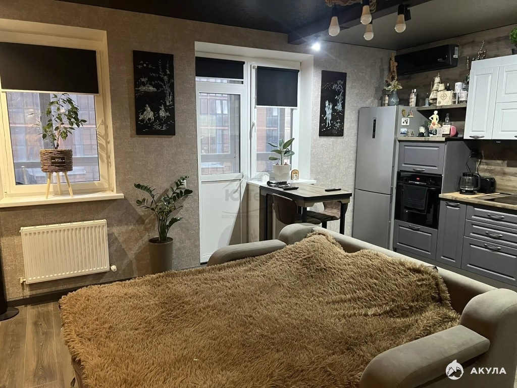 Арт. 91236909. В продаже шикарная студия с дизайнерским ремонтом в новом доме. В квартире есть все, что необходимо для жизни, остается все! Новый ЖК с уже развитой инфраструктурой, в шаговой доступности все магазины, остановки транспорта, школы и мед.учреждения. ЖК находится в самом экологичном и развивающимся районе города, Южном.