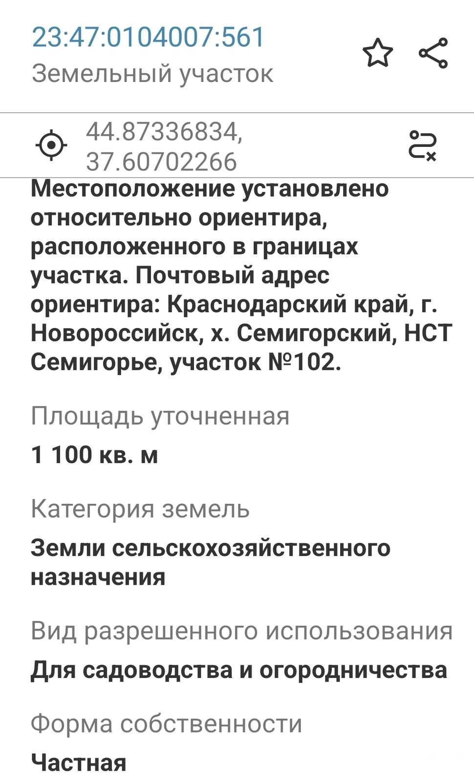 Кадастровый номер 23:47:0104007:561