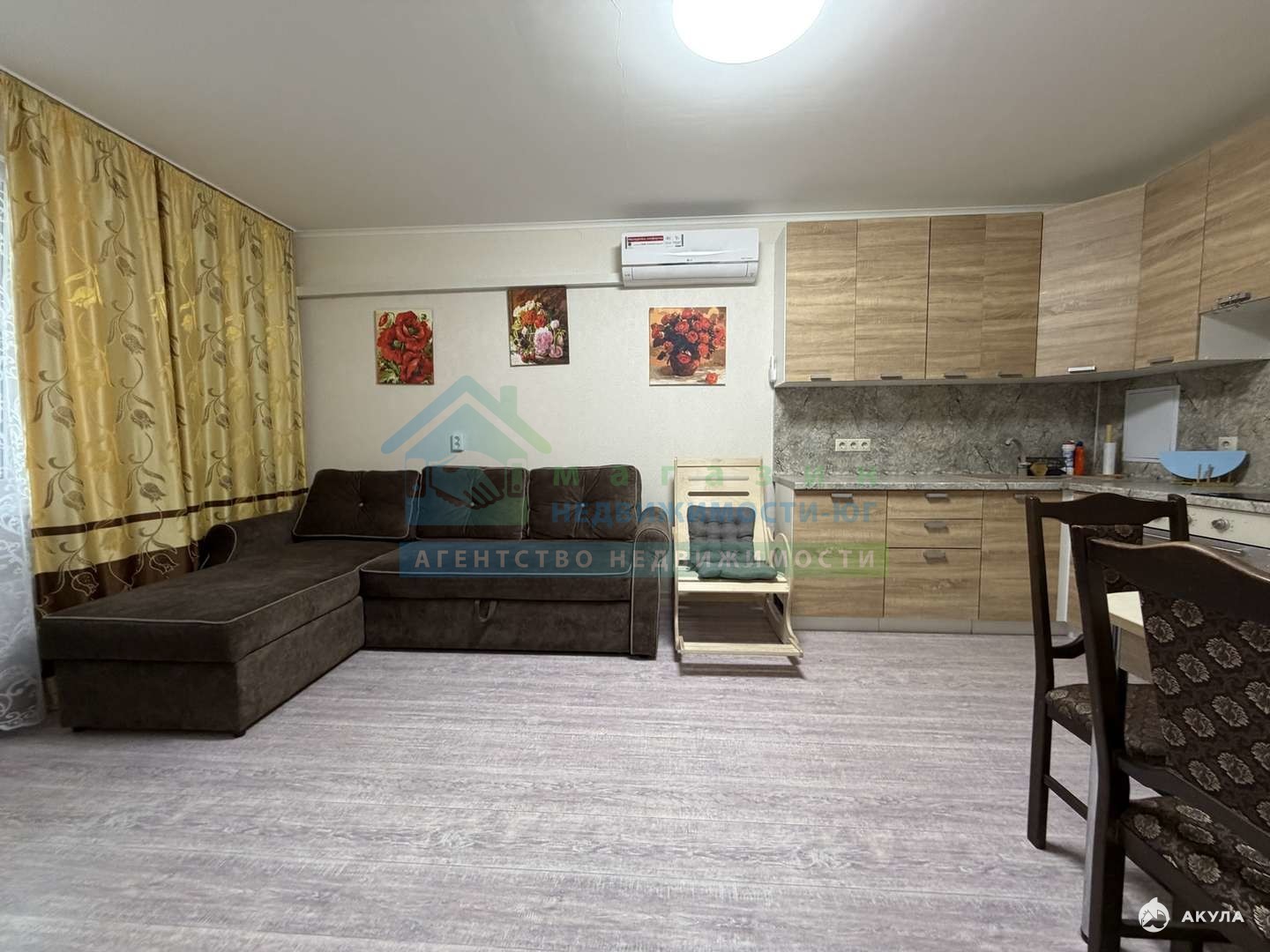Просторная кухня- гостиная 19 м2 и изолированная спальня