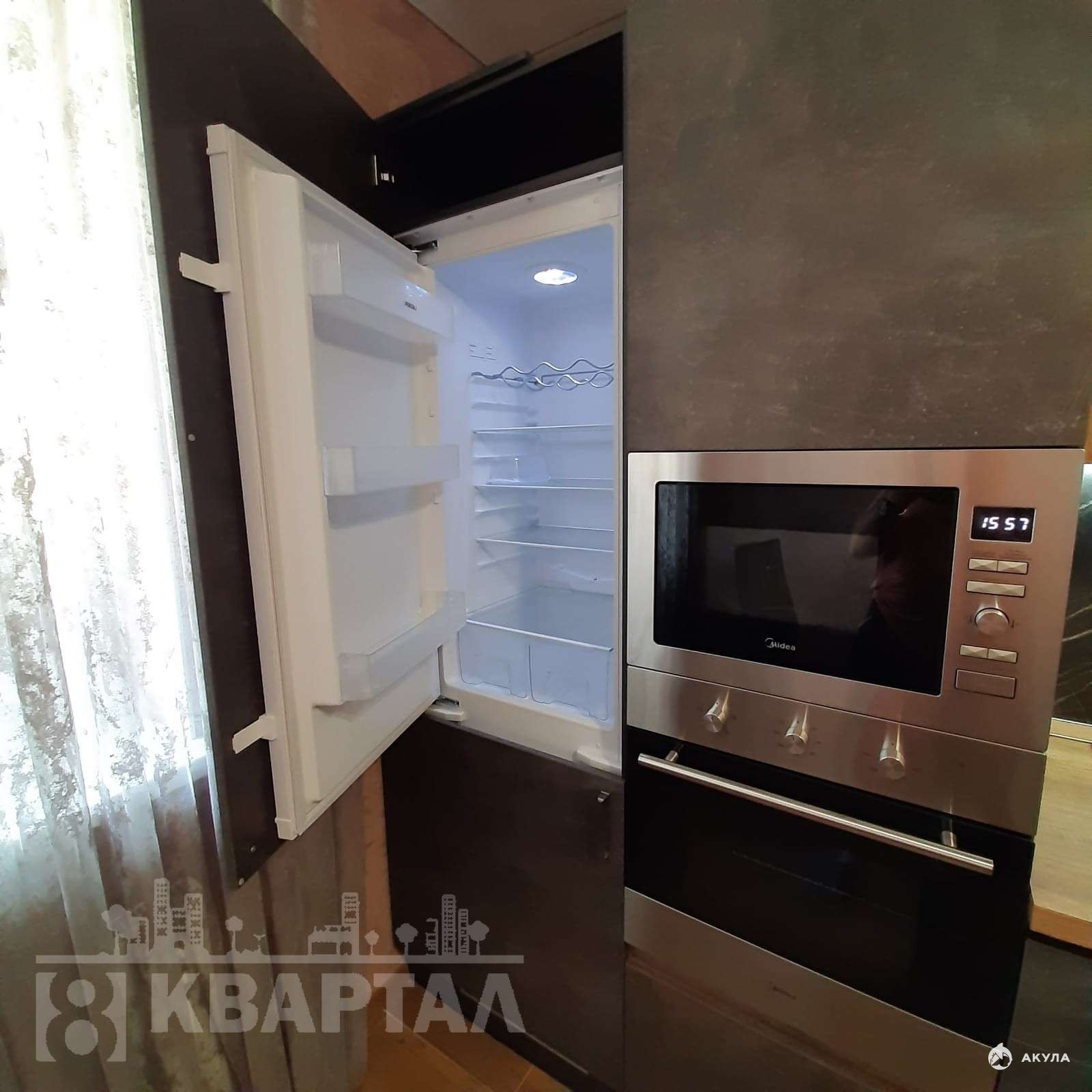 В квартире есть всё необходимое для комфортного проживания: холодильник; телевизор; интернет; стиральная машина; кондиционер; мебель (диван, стол, стулья); кухонный гарнитур; кровать.