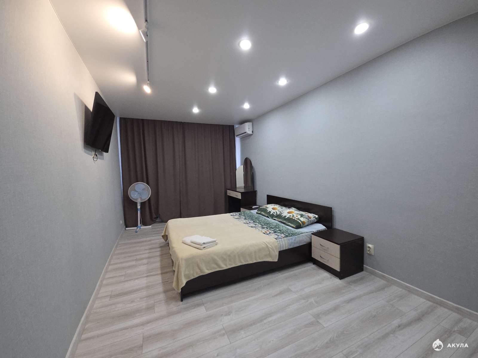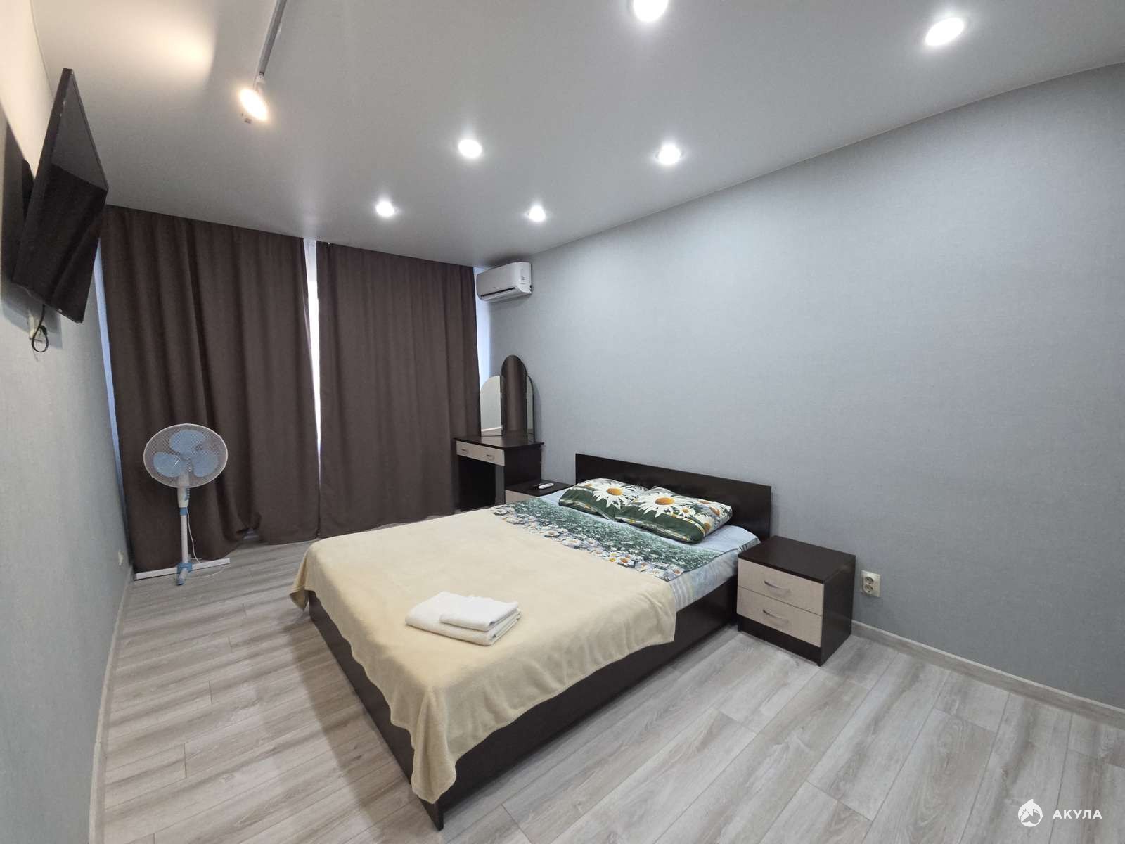 В спальне большая 2х спальная кровать.